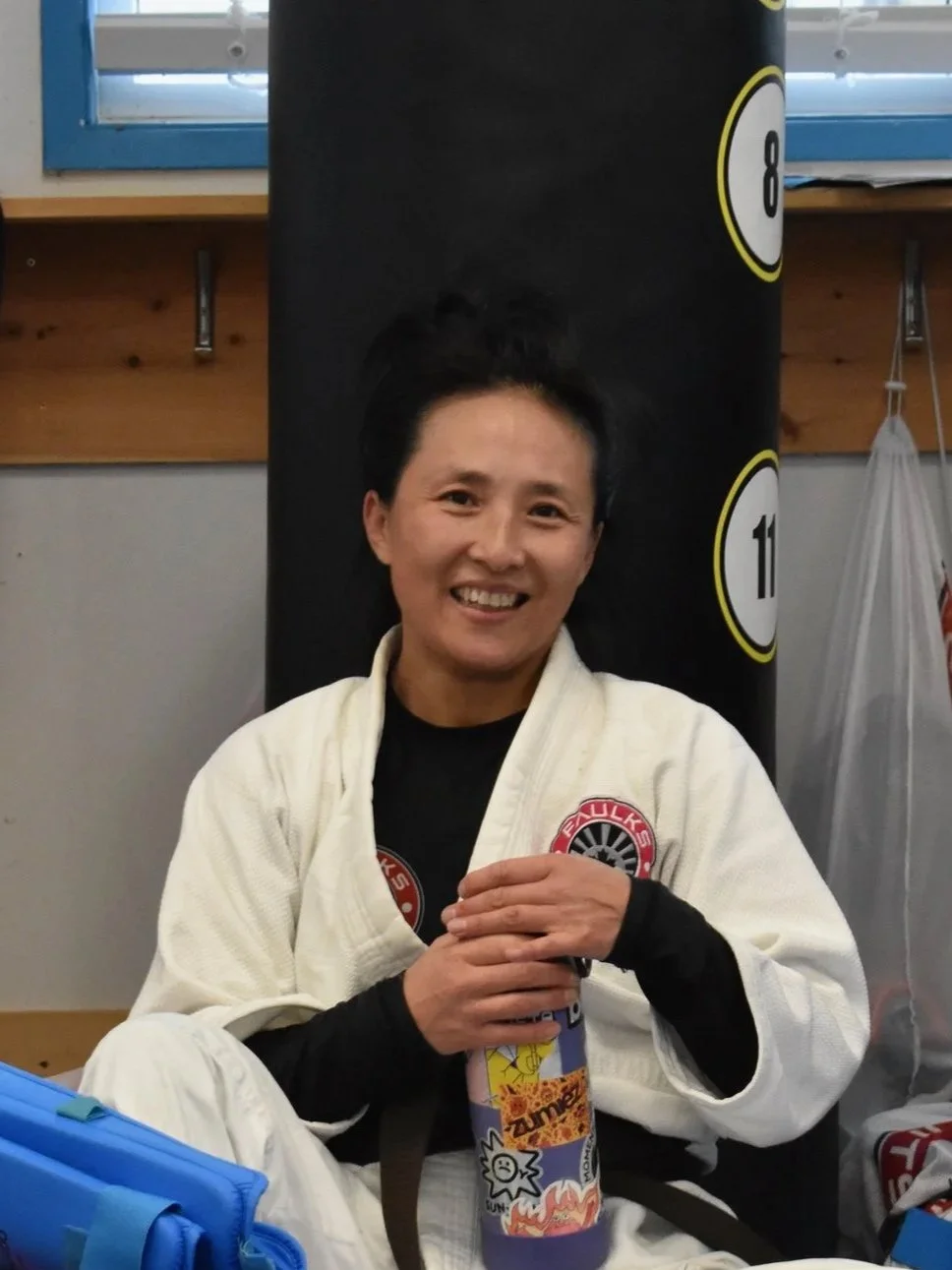 I have been practising Japanese Jiu Jitsu for 6 years. I’m a mother of two young Jiu Jitsu-ka; I enjoy ground fighting with my kids before they go to bed :) My favourite throw is Arm Throw with a knee drop. My favourite class is Jiu Fitsu. I also enjoy playing tennis and jogging along on our beautiful local trails. I am an NCCP-certified instructor. The movie 'Bruised’ by Halle Berry was such an inspiration to me. I strongly believe “No fight is the best fight.”